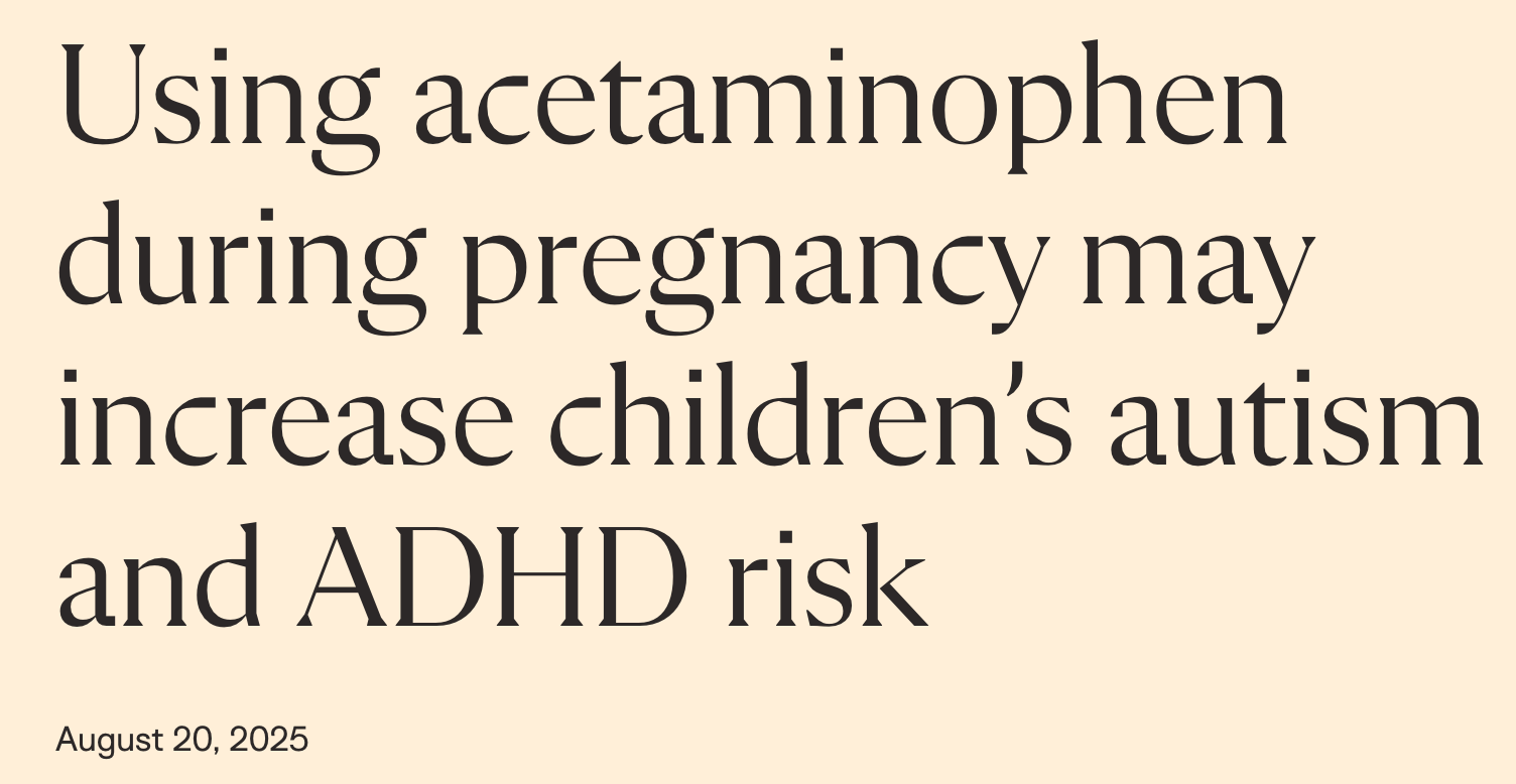 In digging a little deeper on this, I came across a Harvard paper from just a month ago showing Tylenol caused an increase risk of autism.