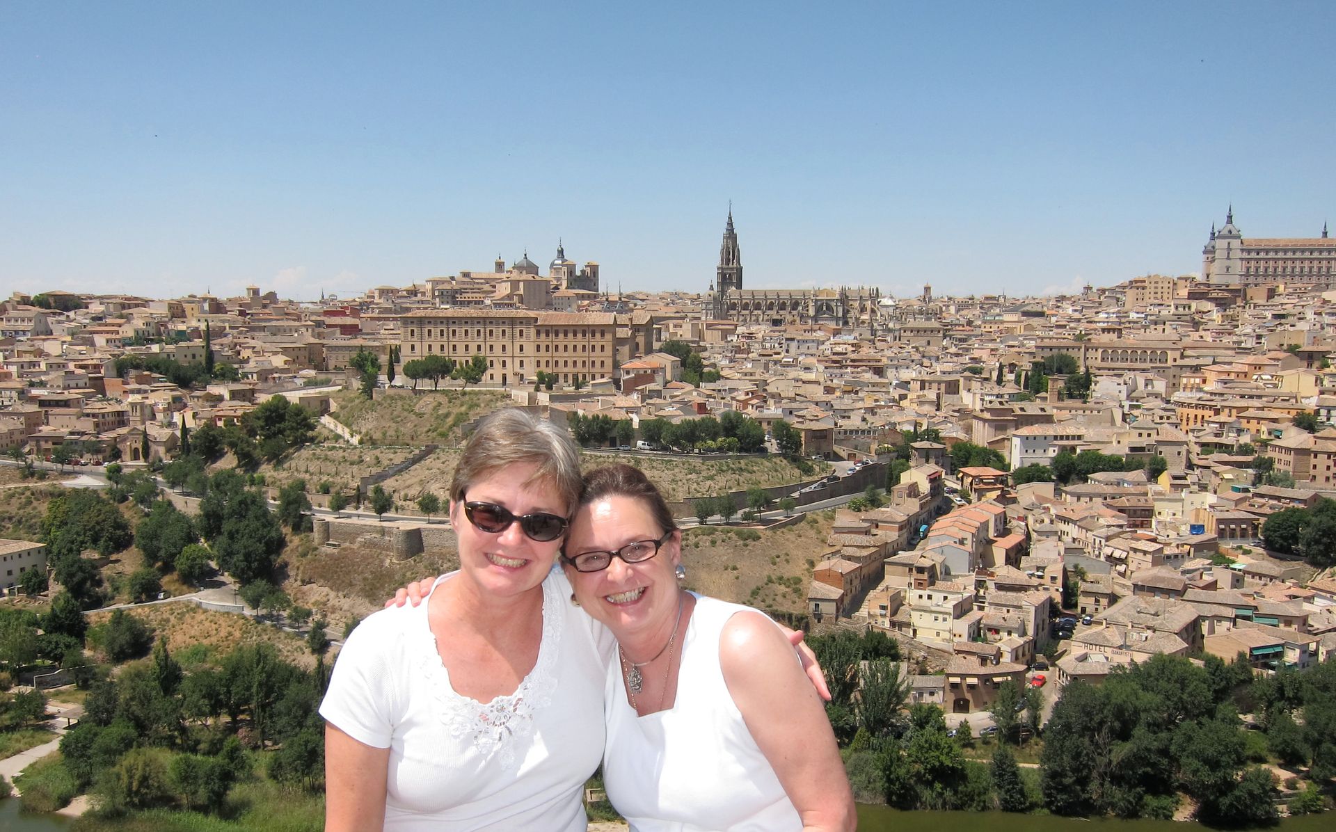 MD and her sister at an overlook of Toledo, Spain